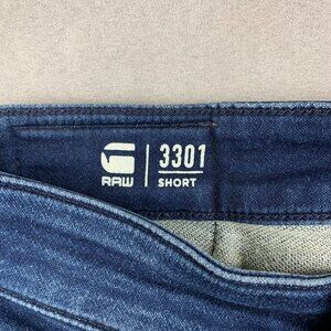 G Star Raw Men Jean Shorts 30 Blue Denim 3301 1/2 Button Fly Medium Wash Stretch