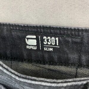 G Star Raw Mens Jean Shorts 30 Black Denim 3301 Slim 1/2 Stretch Dark Wash