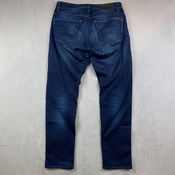 G Star Raw Mens Pants 31 Blue Jeans 3301 Tapered Button Fly Dark Wash 31x32
