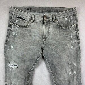 G Star Raw Mens Pants 34 Gray Distressed Jeans 3301 Slim Thrashed Ripped 34x30