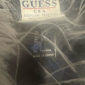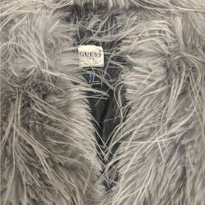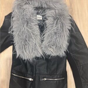 G by Guess Black Leather Jacket with Luxurious Gray Fur Collar