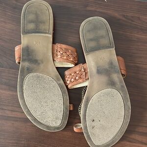 These G by Guess camel brown sandals feature a comfortable toe ring design. They’re great for casual wear or beach days. The neutral color goes well with many outfits and makes them easy to style.