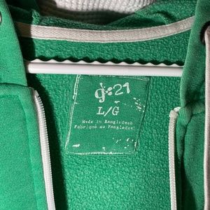 G:21 Green Zip Up Hoodie. Great used condition! Slight paint chipping on the zipper pull.