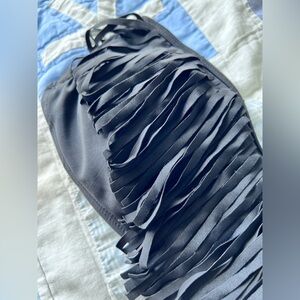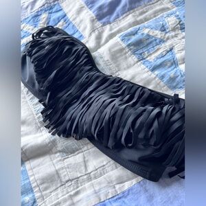 G21 Womens Black Fringe Bandeau Tube Bikini Top Medium