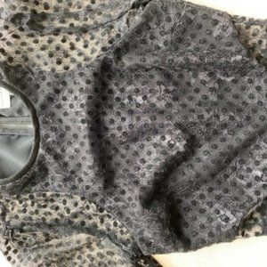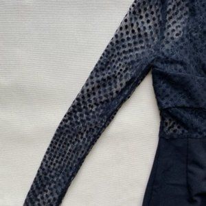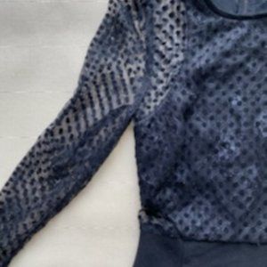 This piece was worn only twice, it's in perfect condition since purchasing. Love pieces I couldn't ever catch someone else in. Between the lace detailing and velvet polkadots it's one of a kind and the perfect little black dress!