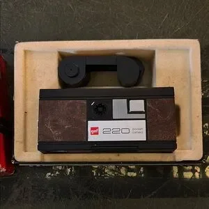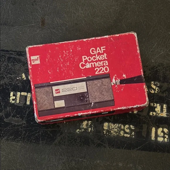 Vintage GAF Pocket Camera 220 with original red packaging. Classic design for collectors.