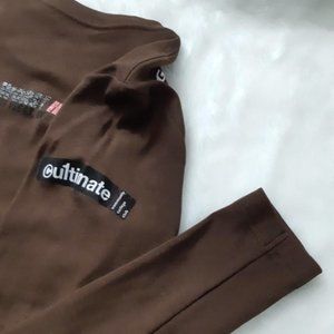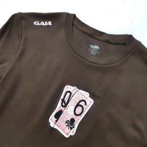 GALA Brand Women Girls Teens Tee-shirts Tops Dark Brown Color, made with 100% Cotton Soft and Cozy Material, Stretchable, Brown Crew Round Neck, Long Sleeved, Fun Multi-color white red black Printed Graphics for causal, sport, travel, leisure, shopping or school. Lightly worn in excellent condition.