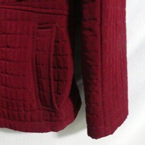 GALLERY | large | Burgundy Quilted Zip-Up Jacket | Button Waist Details