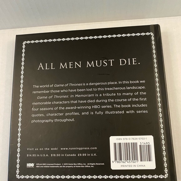Pictures and descriptions of people who died in game of thrones. Approximately 4”x4”