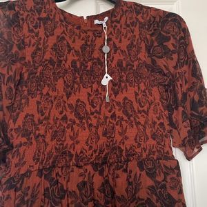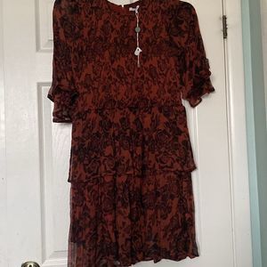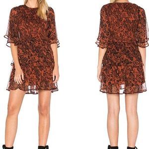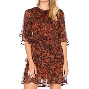 Ganni Beaumont chiffon tiered dress, with smocking on the skirt and ruffled sleeves