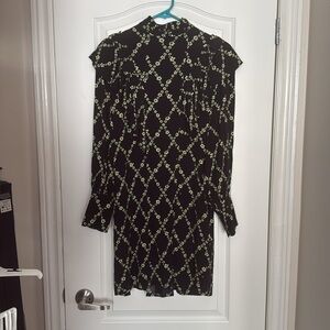 GANNI I Printed Crepe Ruffle High Collar Dress Size 34 XS