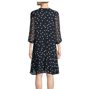 Brand new with tags! Beautiful flowy lined polka dot dress, knee length, 3/4 sleeves.