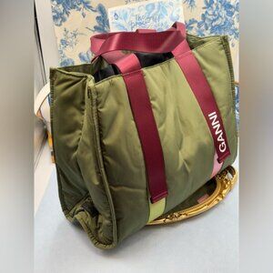 🆕 GANNI 🧿 NWT Medium Recycled Tech Tote, Kalamata & Burgundy