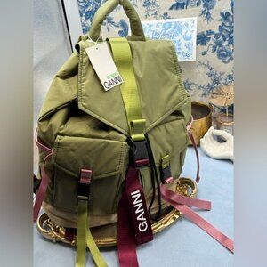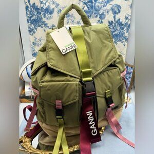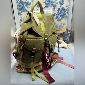 🆕 GANNI 🧿 NWT Recycled Tech Backpack, Kalamata Green & Purple / Pink