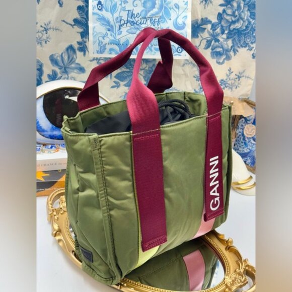 🆕 GANNI 🧿 NWT Small Recycled Tech Tote Bag Crossbody, Kalamata & Burgundy Pink