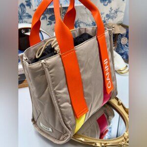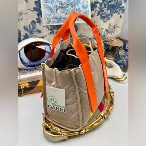 🆕 GANNI 🧿 NWT Small Recycled Tech Tote Bag Crossbody, Khaki & Orange