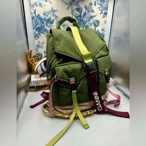 🆕 GANNI 🧿 NWT Tech Recycled Backpack, Kalamata
