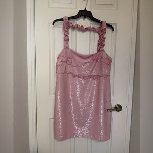 GANNI NWT pink mini party sequins dress with ruffle straps- size EU 46- US 14/16