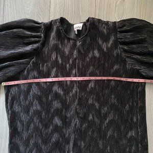 A three-quarter sleeve dress with a pleaed texture throughout.