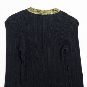 GANNI Ribbed Cotton Blend Sweater Black Metallic Contrast Trim