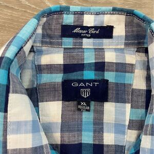 GANT Manor Cord Fitted Blue Plaid Cotton Lightweight Summer Casual Shirt XL