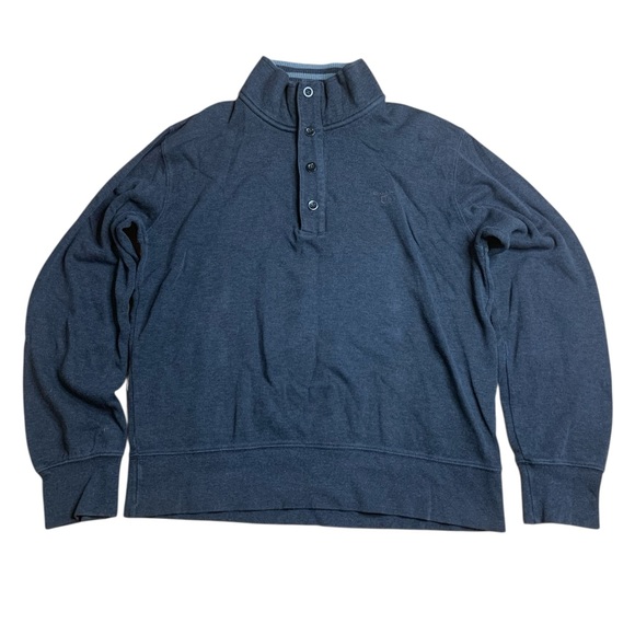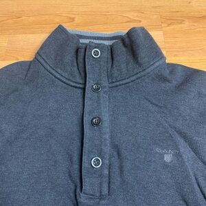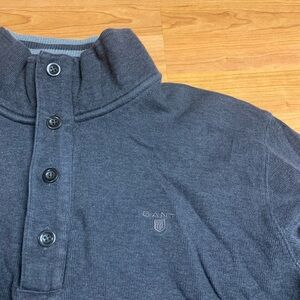 GANT Men’s Quarter Zip Button Mock Neck Sweater Cotton Elbow Patches Grey L