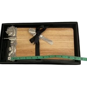 GANZ Wooden Silver Tone Cheeseboard and Spreader Set New in the Box