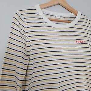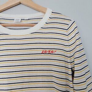 GAP 100% Cotton Fine Kit Crewneck Sweater Stripe Novelty XOXO Embroidery Sz M