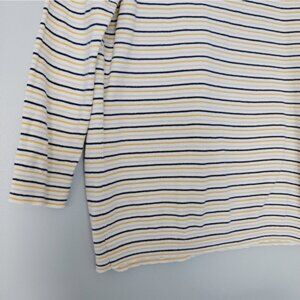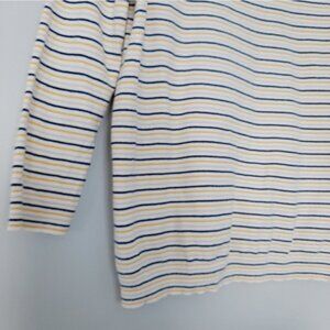 • Cute fine knit pullover crew neck sweater top in stripped pattern with 3/4 length sleeves. It has XOXO embroidered on the chest.