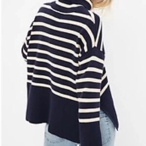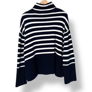 GAP 100% Cotton Navy Cream Stripe 24/7 Split Hem Turtleneck Sweater US L