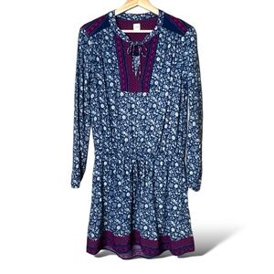 GAP 100% Rayon Crepe Floral Mini Dress Tie Neckline Tie Elasticized Waist Sz S