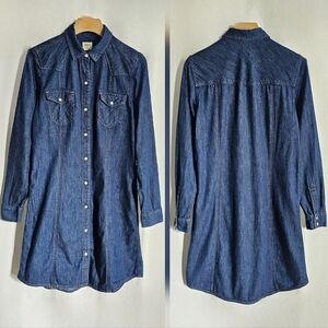 GAP 1969 Long Sleeve Dark Blue Denim Western Button Shirt Dress