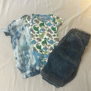 1 pair of newborn jeans with snaps in the hem and lined with soft jersey cotton