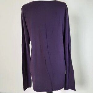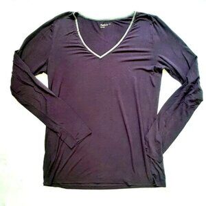 This GAP Body long sleeve shirt in size large is a must-have basic for any wardrobe. The purple V-neck T-shirt is made from soft, comfortable material that's perfect for everyday wear. The shirt features a regular fit and is designed for women.The long sleeves make it ideal for cooler weather, and the simple style means it can be dressed up or down. This shirt is perfect for casual occasions, running errands or lounging at home. Don't miss out on this versatile piece that's sure to become a staple in your closet.