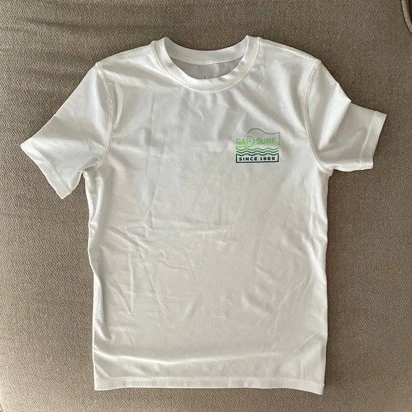 This GAP white s/s rashguard showcases a timeless design with its bright white color. A comfortable and stretchy material lends an ease of movement when in the water. A great staple for sun protection!