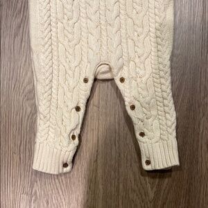 "Gap's Cable knit one-piece: Soft Aran sweater knit with cable-stitch detailing., Long sleeves., Crewneck., Ribbed trim throughout., Buttons at shoulder and inseam for easy dressing and diapering."