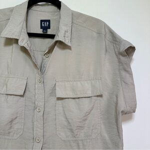 GAP | Beige Utility Short Sleeve Button-Down Shirt – Chino Style