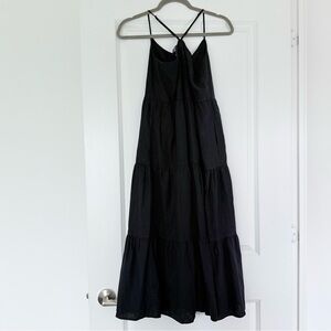 GAP Black Linen Blend Tiered Midi Dress XXS | XS Spaghetti Strap