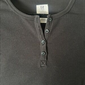 Classic black long sleeve tee from GAP. Features a buttoned neckline. Great Condition.
