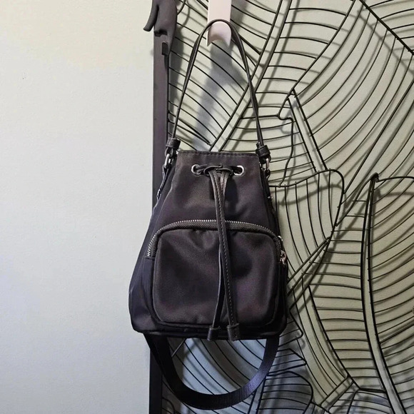 GAP | Black Nylon Vegan Leather Drawstring Mini Bucket Bag - NWOT