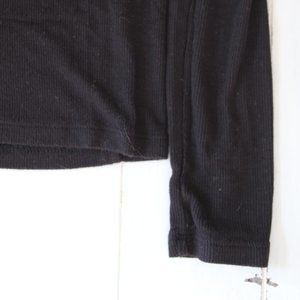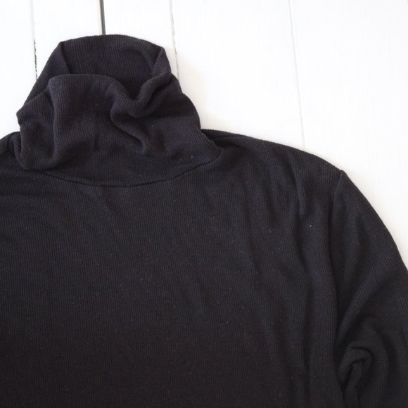 A black ribbed long sleeve turtleneck in a soft body hugging material. A modal blend fabric makes this shirt stretchy and soft. Long torso length, perfect for tucking into a pair of jeans or a cute plaid skirt.