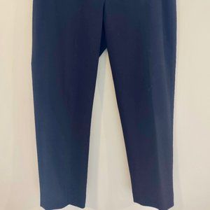 In excellentcondition. Fabric is 63% polyester, 33% viscose and 4% spandex. Moderately stretchy, these are both sharp and comfortable.