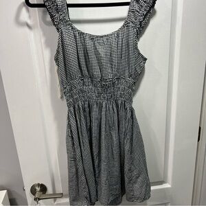 Chic GAP dress with a black and white gingham pattern. Features a sleeveless design with a gathered waist. not lined