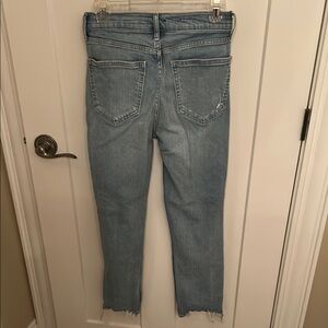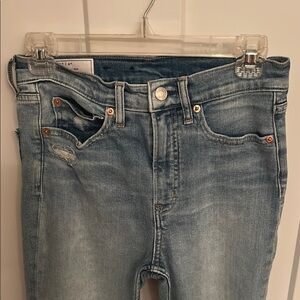 These GAP jeans showcase a classic blue color with a trendy ankle-cropped style, perfect for a casual, modern look. Stretchy and comfortable.