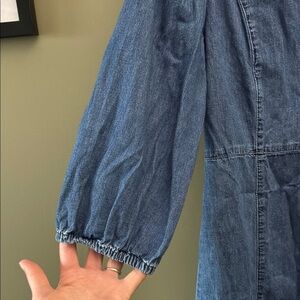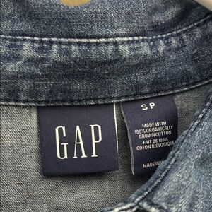This versatile blue midi dress from GAP features a buttoned front and a notched collar, perfect for both casual and work settings. The 3/4 cuffed sleeves and A-line silhouette offer a stylish and comfortable fit, making it a timeless addition to your wardrobe. 100% organic cotton.