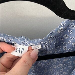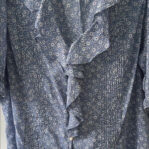 GAP Blue Floral Ruffle Front Button Blouse