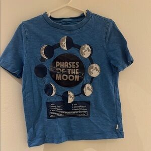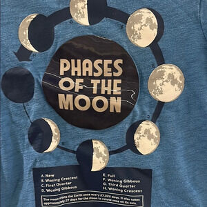 This GAP short sleeve tee in a soothing blue hue features a striking moon phases design, perfect for adding a celestial touch to your casual wardrobe. The circular graphic showcases the moon's cycle, blending science with style effortlessly. Ideal for everyday wear, this tee offers both comfort and a unique educational flair.
