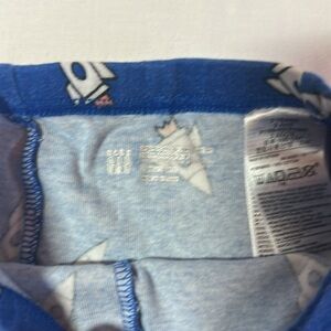 Cozy and fun blue pajamas featuring a playful rocket print. Perfect for bedtime adventures.