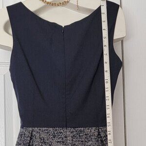 Fitted GAP blue shift dress with navy solid bodice and wool skirt.