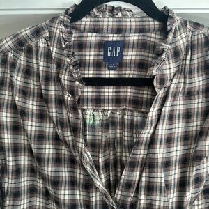 GAP Brown, Black, & Ivory/Cream Plaid Crinkle Gauze Puff Sleeve Shirt - Size XL
